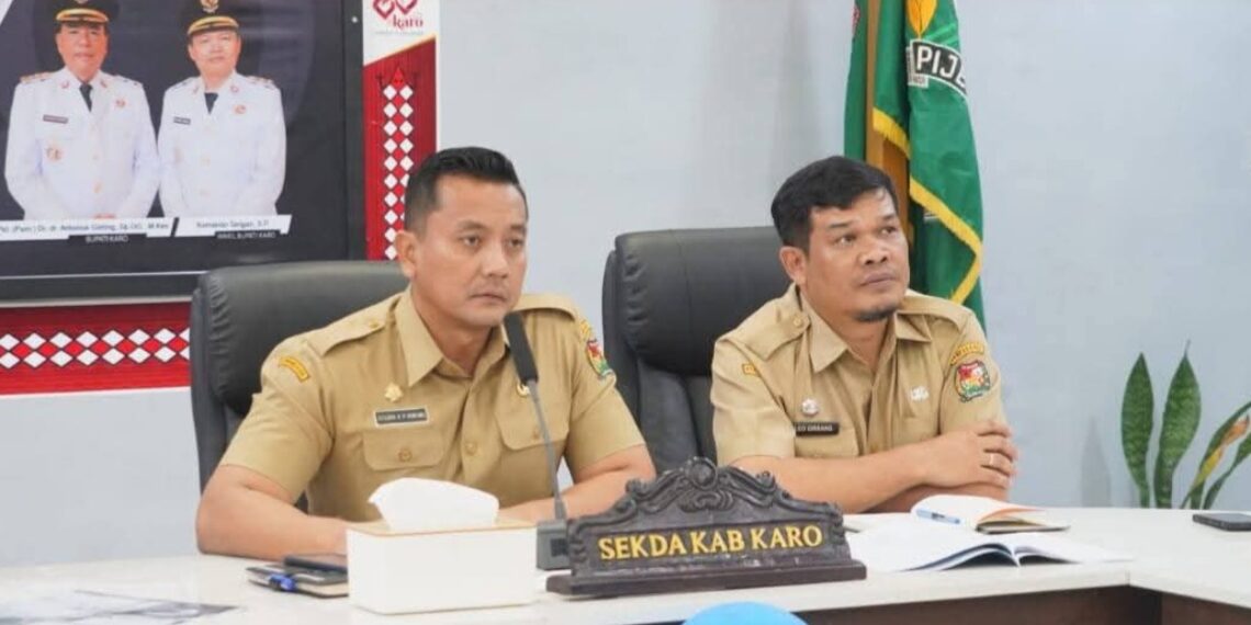 Kabanjahe, Karosatuklik.com – Bupati Karo, Brigjen Pol (Purn) Dr. dr. Antonius Ginting, Sp.OG, M.Kes didampingi Wakil Bupati, Komando Tarigan, SP, Sekda Gelora Kurnia Putra Ginting,