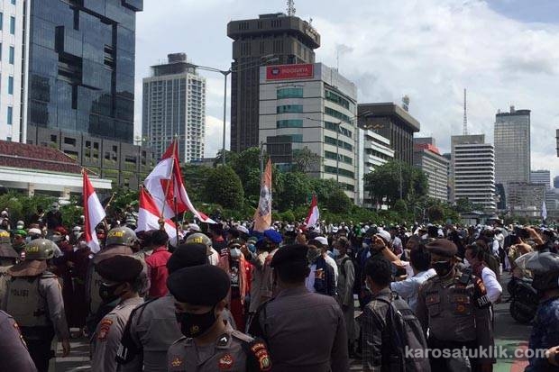 Jakarta, Karosatuklik.com – Polisi mengamankan 155 orang terkait aksi 1812 yang digelar di Patung Kuda, Jakarta Pusat pada Jumat (18/12/2020). Di antara orang yang diamankan itu, ada pula yang kedapatan membawa senjata tajam (sajam) dan ganja.
