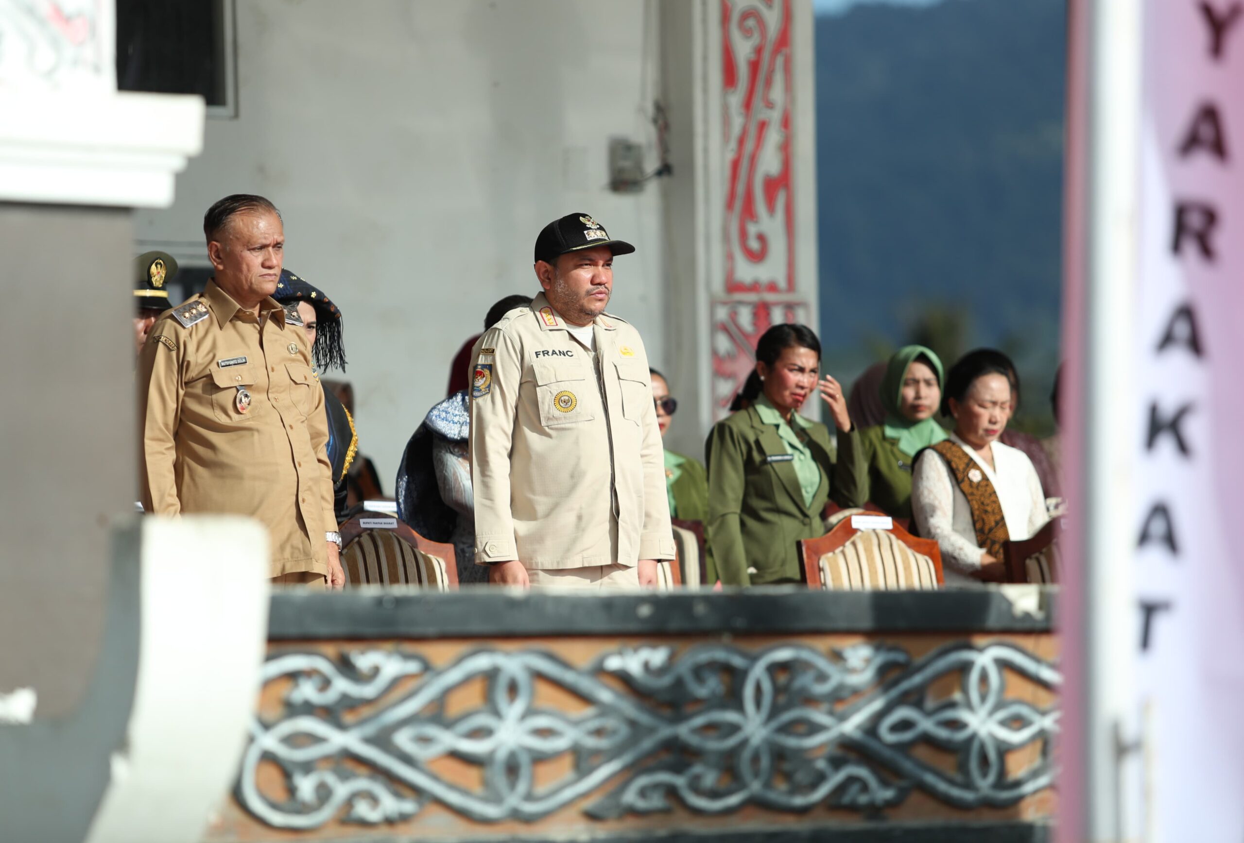 Salak, Karosatuklik.com – Bupati Pakpak Bharat, Franc Bernhard Tumanggor menghadiri Upacara Peringatan HUT Bhayangkara ke-79 tingkat Kabupaten Pakpak Bharat di lapangan Napa Sengkut, Salak, Selasa (1/7/2025).