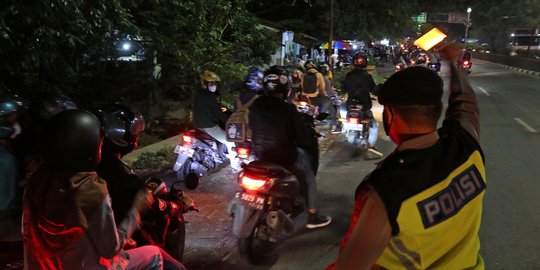 Petugas terpaksa membuka jalur mudik karena kendaraan bermotor bertumpuk. Para pengendara motor pun melaju ke kampung halaman mereka.