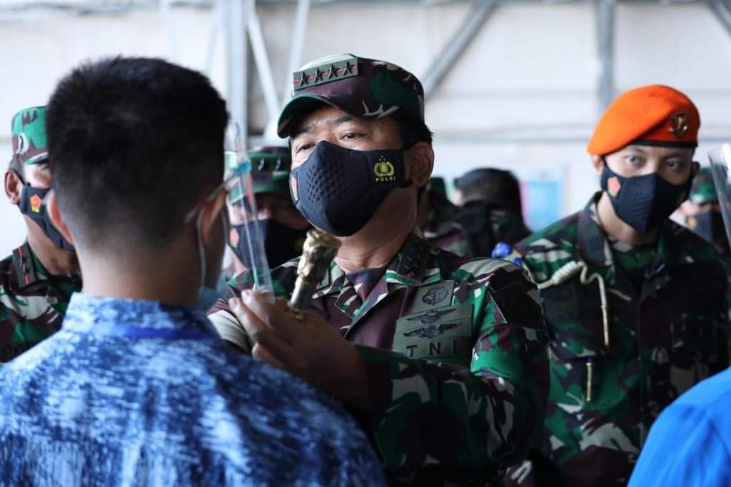 Surabaya, Karosatuklik.com – Panglima TNI Marsekal TNI Hadi Tjahjanto, S.I.P., mendampingi Menteri Pertahanan (Menhan) Prabowo Subianto selaku Irup (Inspektur Upacara) dalam acara penganugerahan Tanda Kehormatan Republik Indonesia (RI) dan kenaikan pangkat luar biasa untuk 53 Prajurit Kapal Perang Republik Indonesia (KRI) Nanggala-402.
