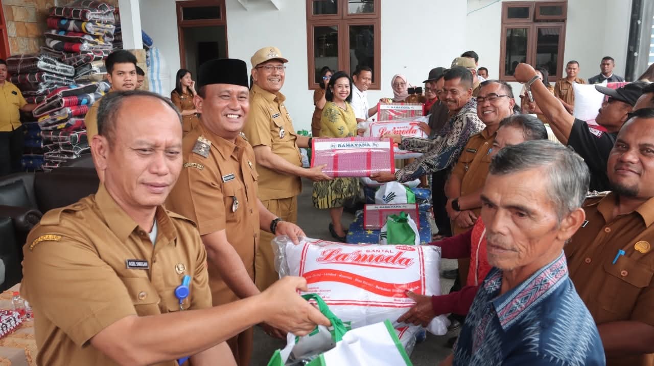 Bantuan atensi untuk 57 warga penerima yang telah terdata diserahkan oleh Bupati Dairi Vickner Sinaga bersama Wakil Bupati Dairi Wahyu Daniel Sagala.