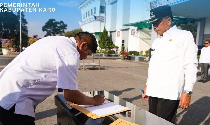 Hal itu disampaikan Bupati Karo, Brigjen Pol (Purn) Dr. dr. Antonius Ginting, SP.OG, M.Kes, saat memimpin apel gabungan perdana pasca libur Lebaran Idul Fitri 2026 di halaman Kantor Bupati Karo, Jalan Letjen Djamin Ginting Kabsnjahe, Rabu (25/3/2026).