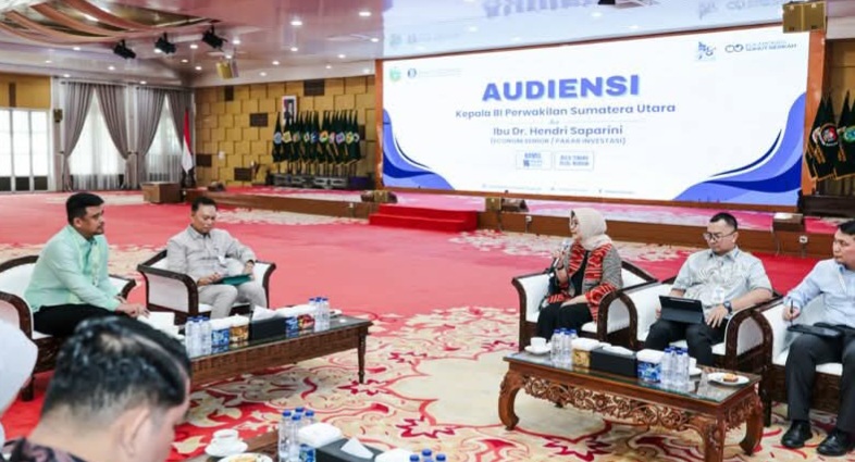 Hal tersebut disampaikan Bobby Nasution saat menerima audiensi Kepala Perwakilan BI Provinsi Sumut Rudy Brando Hutabarat bersama ekonom senior dan pakar investasi nasional Hendri Saparini, di Aula Tengku Rizal Nurdin, Jalan Sudirman No 41, Medan, Kamis (16/4/2026).