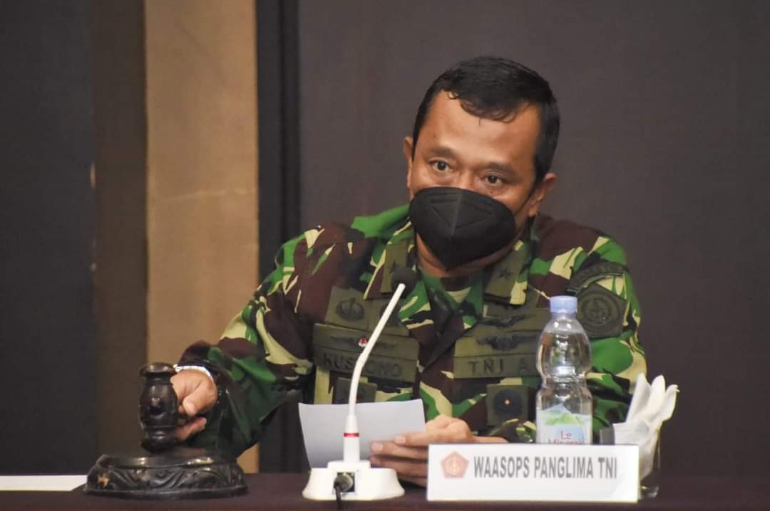 Demikian amanat Asisten Operasi (Asops) Panglima TNI Mayjen TNI Tiopan Aritonang yang dibacakan Wakil Asisten Operasi (Waasops) Panglima TNI Marsma TNI Kustono, S.Sos. pada acara Rapat Koordinasi dan Penyusunan Rencana Kerja Latihan TNI Tahun 2022 di Hotel Santika Taman Mini, Jakarta Timur, Kamis (8/4/2021).