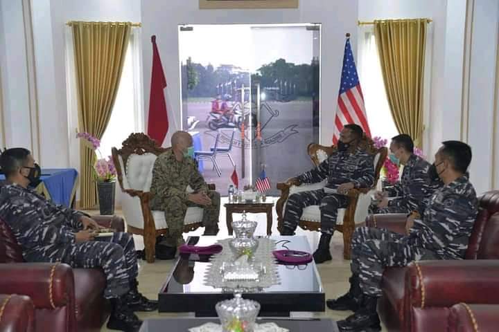 Jakarta, Karosatuklik.com – Komandan Korps Marinir (Dankormar) Mayor Jenderal TNI (Mar) Suhartono, berkenan menerima Atase Militer USMC Letkol Cedric Lee di ruang VIP Gedung Cakra Brigif 1 Marinir Cilandak, Jakarta Selatan, Jum’at (16/04/2021).