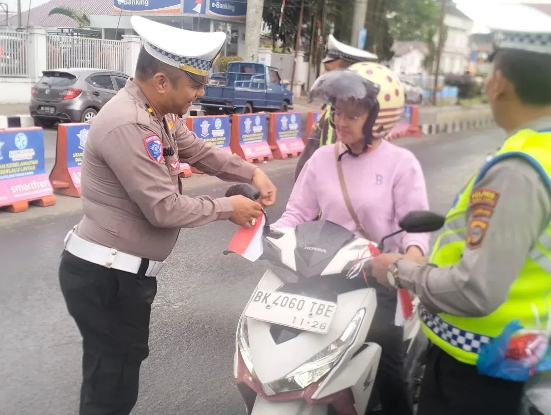 Dipimpin oleh Kanit Gakkum Satlantas Ipda Sri Wahyuni Ginting bersama Ps. Kanit Kamsel Aiptu Sudarmono serta personel Sat Lantas lainnya, kegiatan ini tidak hanya berupa pembagian bendera, tetapi juga disertai edukasi mengenai pentingnya tertib berlalu lintas.