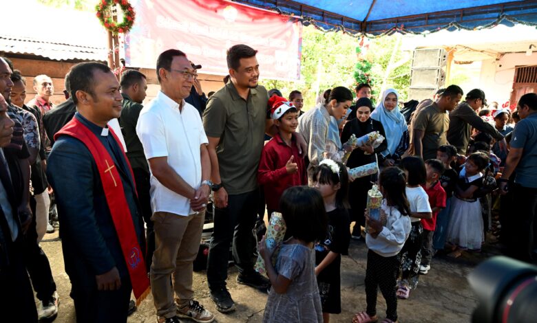 “Kita sama-sama berdoa agar kita cepat pulih, bersama-sama kuat menghadapi bencana dan kita doakan Natal tahun depan bisa lebih baik, lebih ceria lagi,” kata Bobby Nasution.