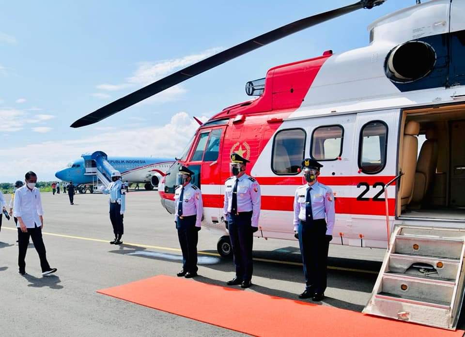 Dengan menggunakan Pesawat Kepresidenan Indonesia-1, Presiden yang antara lain didampingi oleh Menteri Pekerjaan Umum dan Perumahan Rakyat Basuki Hadimuljono dan Sekretaris Kabinet Pramono Anung lepas landas dari Pangkalan TNI AU Halim Perdanakusuma, Jakarta, sekitar pukul 06.00 WIB dan dijadwalkan mendarat di Bandara Frans Seda, Kabupaten Sikka, dilansir Karosatuklik.com dari Biro Pers Istana Presiden.