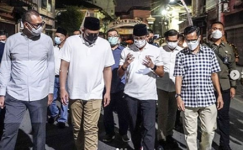 Medan, Karosatuklik.com – Menteri Pariwisata dan Ekonomi Kreatif (Menparekraf) Sandiaga Salahuddin Uno bersama Wali Kota Medan Bobby Nasution mengunjungi kawasan Kesawan Square, Sabtu (27/3/2021) malam.