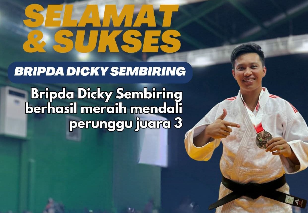 Personel Satbrimob Polda Sumut, Bripda Dicky Sembiring, berhasil meraih medali perunggu (juara 3) dalam ajang Pekan Olahraga Nasional (PON) cabang beladiri Judo kelas Nage No Kata yang digelar di GOR Djarum Arena, Kudus, Jawa Tengah, Minggu (12/10/2025).