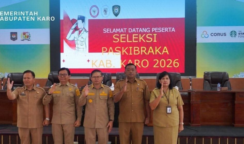 Kabanjahe, Karosatuklik.com – Bupati Karo, Brigjen Pol (Purn) Dr. dr. Antonius Ginting, Sp.OG, M.Kes, diwakili Wakil Bupati, Komando Tarigan, SP, secara resmi membuka Seleksi Calon Pasukan Pengibar Bendera Pusaka (Paskibraka) Kabupaten Karo Tahun 2026 di Aula Rakoetta Brahmana, Kantor Bupati Karo, Kabanjahe, Senin (06/04/2026).