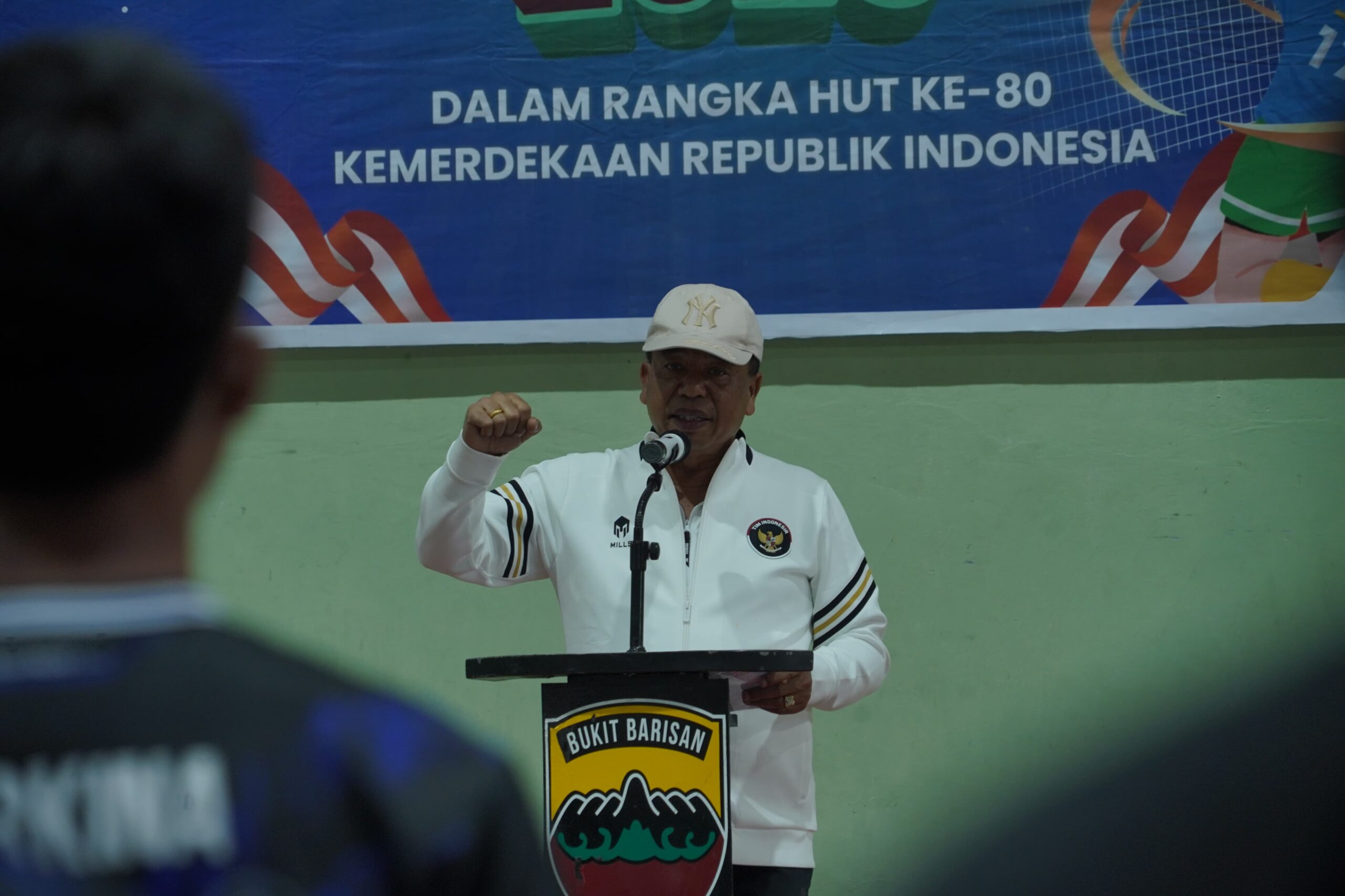 Berastagi, Karosatuklik.com – Bupati Karo, Brigjen Pol (Purn) Dr. dr. Antonius Ginting, Sp.OG, M.Kes, secara resmi membuka Turnamen Bola Volly Putra Merdeka Cup 2025 Piala Bupati Karo di gedung GOR Patriot Kodim 0205/TK, Jalan Letjen Jamin Ginting Berastagi, Selasa (19/08/2025).