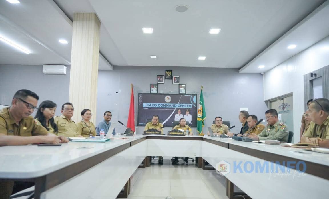 Rapat yang berlangsung di ruang Karo Command Centre (KCC) Dinas Kominfo, Kantor Bupati Karo pada Selasa (9/12/2025) ini juga diikuti oleh Nusantara Purba peternak dan pengusaha yang juga alumni Fakultas Peternakan IPB Bogor, melalui sambungan daring.