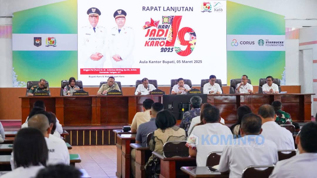 Rapat ini turut dihadiri Wakil Bupati, Komando Tarigan, SP, Forkopimda Kabupaten Karo, Kepala OPD, serta jajaran panitia penyelenggara.