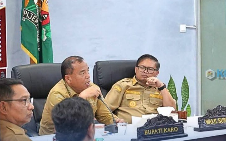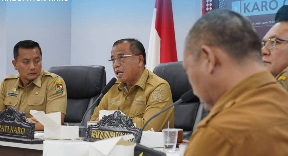 Rapat tersebut dipimpin langsung Bupati Karo, Brigjen Pol (Purn) Dr.dr. Antonius Ginting, Sp.OG., M.Kes, didampingi oleh Wakil Bupati Karo, Komando Tarigan, SP, Sekretaris Daerah, Gelora Kurnia Putra Ginting, S.STP, MM, serta jajaran Kepala OPD terkait, termasuk Kepala Bappedalitbang, Dinas PU, Dinas Perhubungan, serta Dinas Perkim, dan Pertanahan Kabupaten Karo.