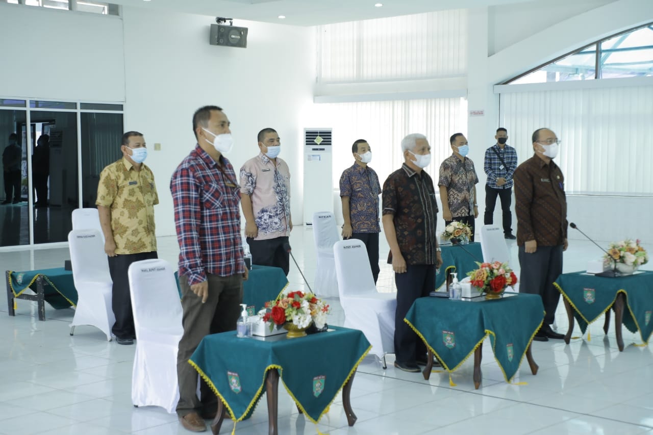 Rapat virtual ini dihadiri secara langsung oleh Bupati Asahan H. Surya, BSc, Wakil Bupati Taufik Zainal Abidin, S.Sos, M.Si, Pimpinan Cabang Bank Sumut Kisaran Fadli, Pj. Sekretaris Daerah Drs. John Hardi Nasution, M.Si, Kepala Dinas Kominfo H. Rahmat Hidayat Siregar, S.Sos, M.Si dan para Asisten yang bertempat di Aula Melati Kantor Bupati Asahan.