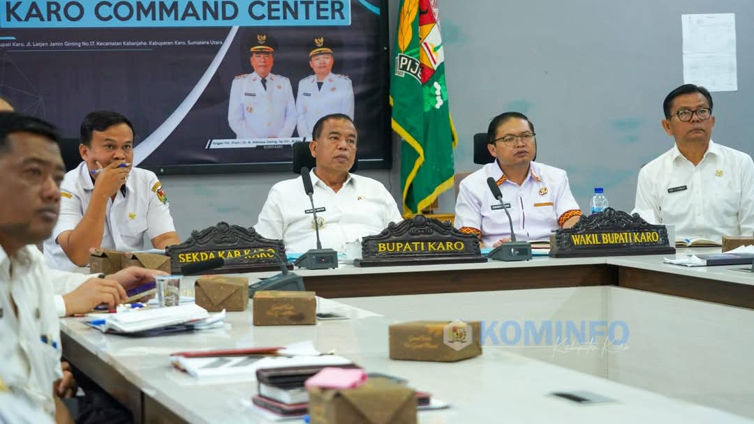 Kabanjahe, Karosatuklik.com – Bupati Karo, Brigjen Pol (Purn) Dr. dr. Antonius Ginting, Sp. OG, M. Kes dan Wakil Bupati, Komando Tarigan, SP, mengikuti Peluncuran Indikator Indeks Pencegahan Korupsi Daerah (IPKD) MCP Tahun 2025 Secara Virtual di ruang Karo Command Center (KCC) Dinas Kominfo, lantai satu Kantor Bupati, Jalan Letjen Djamin Ginting Kabanjahe, Rabu (05/03/2025).