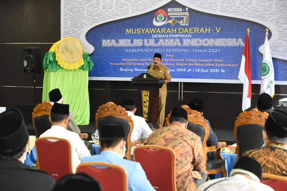Deli Serdang, Karosatuklik.com – Bupati H. Ashari Tambunan yang diwakili oleh Sekda Darwin Zein membuka Musda V MUI Kabupateb Deli Serdang Tahun 2021, Selasa (13/7/2021) di Gedung P3UD Kecamatan Tanjung Morawa, Kabupaten Deli Serdang.