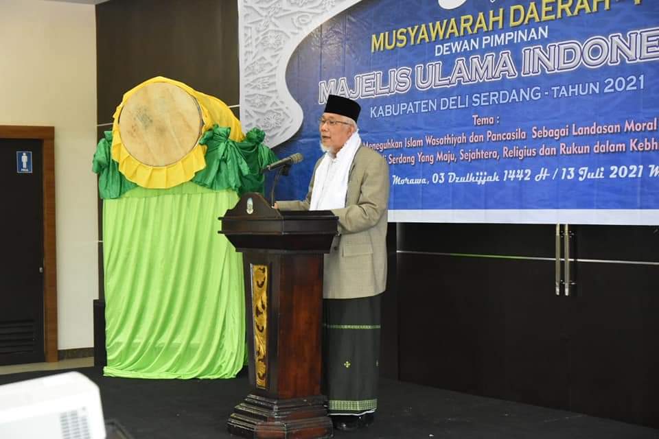 Hadir Pada Musyawarah Daerah (Musda)-V Majelis Ulama Indonesia (MUI) Kabupaten Deli Serdang Tahun 2021, Ketua MUI Sumatera Utara DR H.Maratua Simanjuntak, Ketua Dewan Pembina MUI Deli Serdang H Zainuddin Mars, Wakapolresta Deliserdang AKBP Julianto P Sirait.