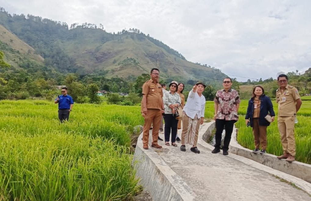 Ikut dalam kunjungan lapangan, Ketua TP PKK Kabupaten Humbang Hasundutan Ny Erma Oloan P Nababan bersama Bappelitbangda, Dinas Pariwisata Pemuda dan Olahraga, Dinas Lingkungan Hidup, Dinas PKP, BPKPD, Dinas PMDP2A, Camat Baktiraja, Kepala Desa Tipang, Kepala Desa Marbun Toruan dan Kepala Desa Sinambela. (R1)