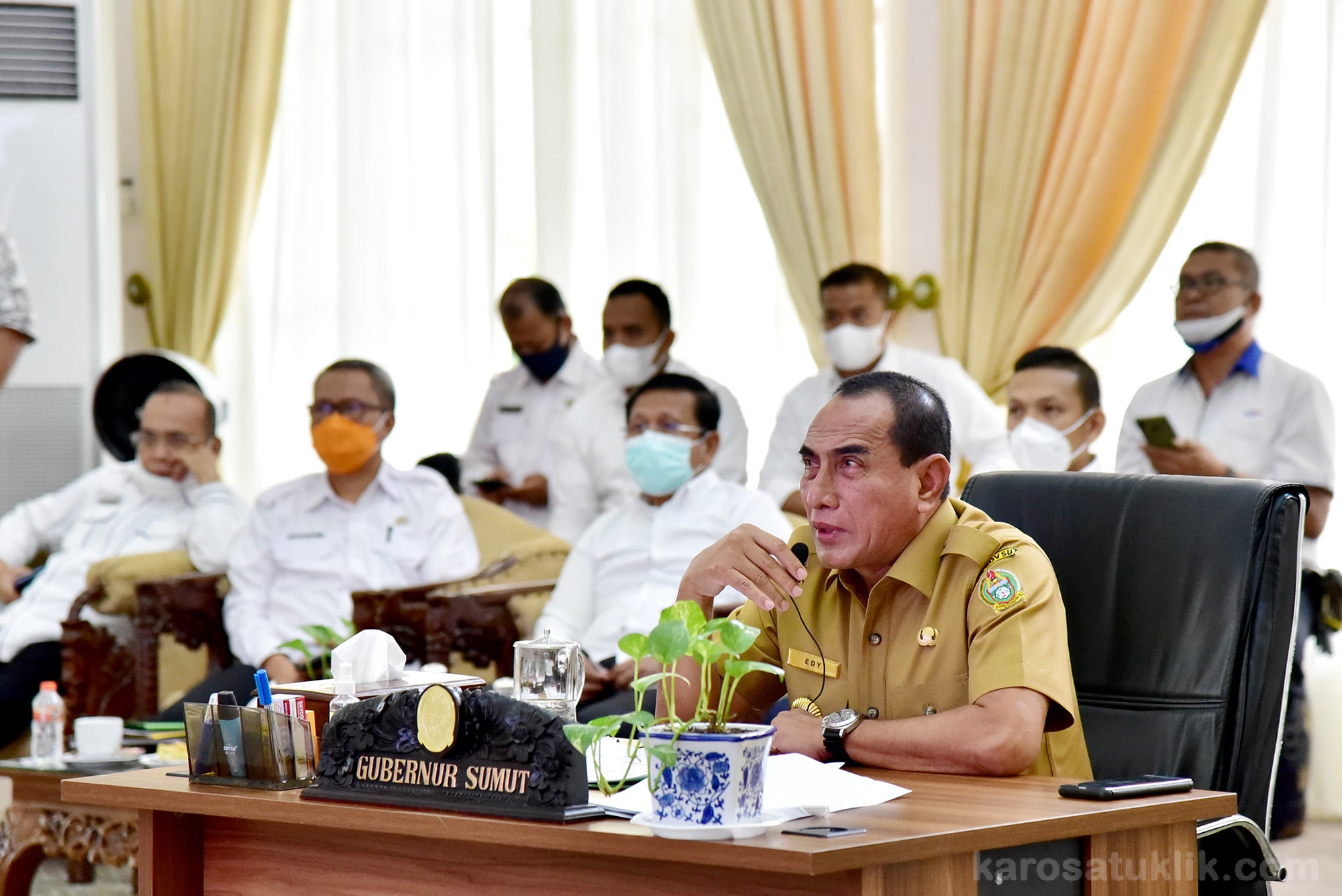 Bupati Karo Terkelin Brahmana, SH, MH mengaku siap di vaksin pertama di Kabupaten Karo, saat rapat virtual dengan Gubernur Sumatera Utara, Edy Rahmayadi bersama bupati dan wali kota se-Sumut, Kamis (7/1/2021).