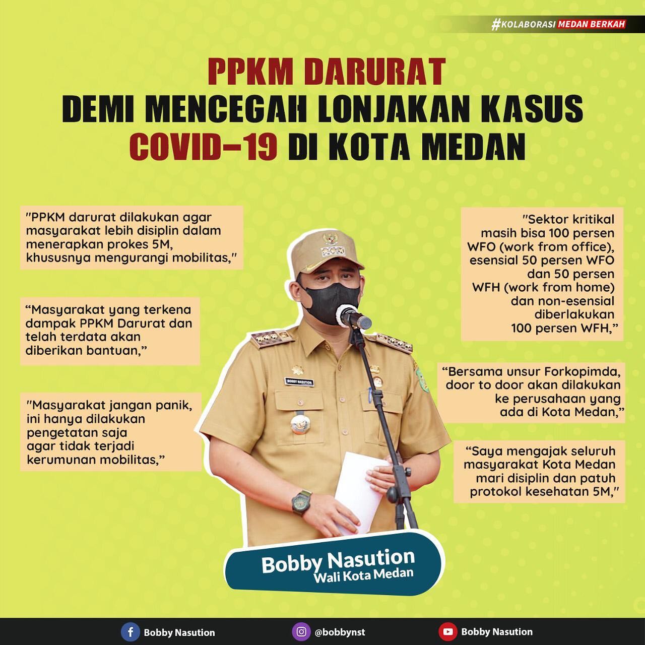 Bobby berharap, masyarakat menaati pemberlakukan dan aturan PPKM darurat yang saat ini sedang berjalan. Jika masyarakat taat dengan 5 M, maka secepatnya kondisi dan jumlah kasus Covid-19 di Kota Medan segera melandai, sehingga aktivitas dan ekonomi kita bisa cepat normal dan pulih.