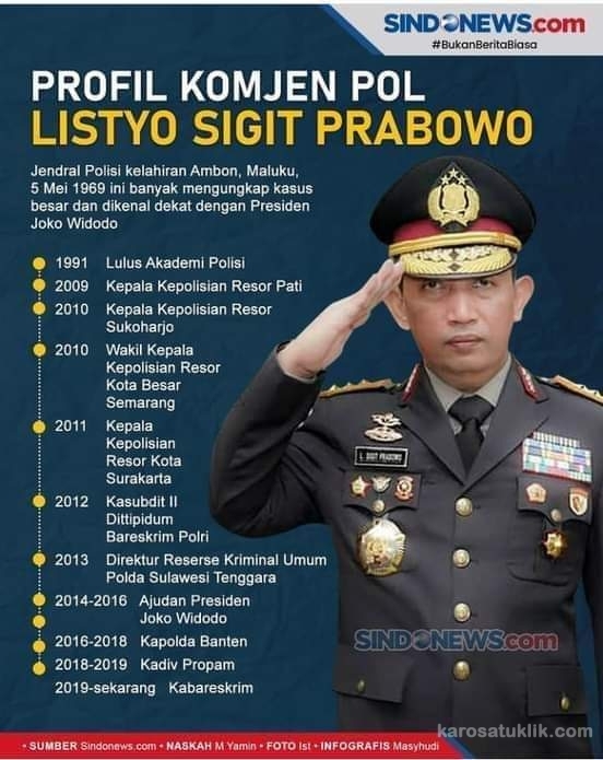 Jakarta, Karosatuklik.com – Kepala Badan Reserse Kriminal (Bareskrim) Polri Komjen Pol Listyo Sigit Prabowo resmi menjadi calon Kapolri tunggal yang dipilih Presiden Jokowi . Di bawah komando Sigit, Bareskrim banyak mengungkap sejumlah kasus besar yang menyedot perhatian publik.