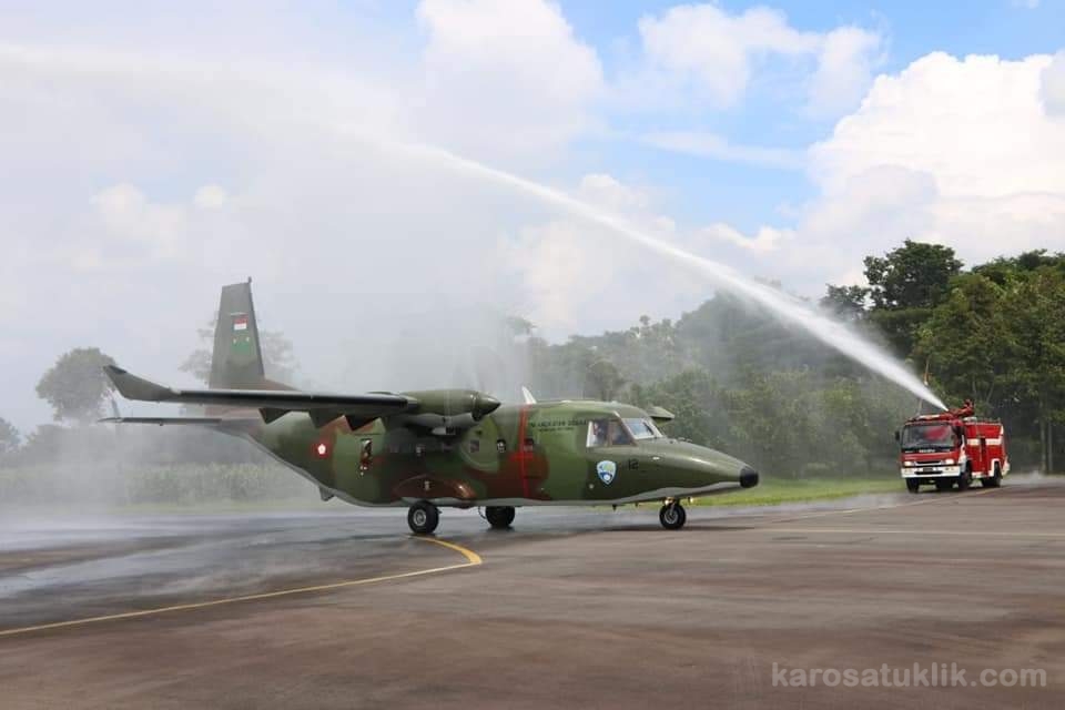 Komandan Lanud Abdulrachman Saleh Marsma TNI Wayan Superman saat menyambut kedatangan NC-212i, menyampaikan rasa syukur mendapat tambahan Alutsista baru.