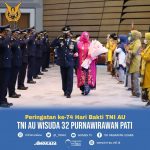 Jakarta, Karosatuklik.com – Sebanyak 32 Perwira Tinggi (Pati) TNI AU, mengikuti upacara wisuda Purnawira. Upacara dipimpin Kasau Marsekal TNI Fadjar Prasetyo, S.E., M.P.P., secara video