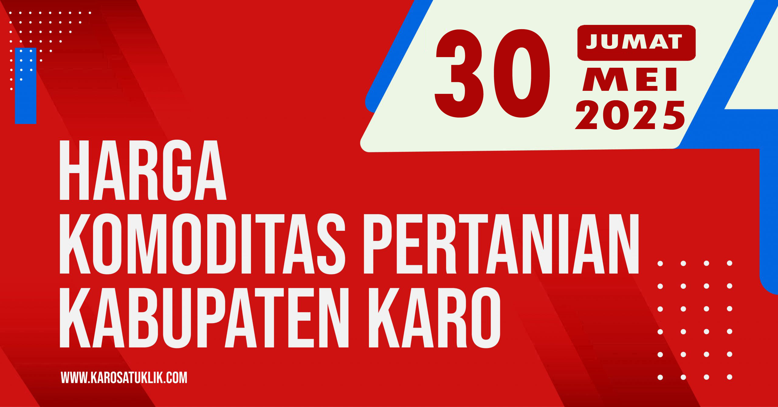 Berastagi, Karosatuklik.com – Berikut ini adalah informasi Daftar Harga Komoditas Pertanian Kabupaten Karo, Jumat 30 Mei 2025, Jam 19.30 WIB.
