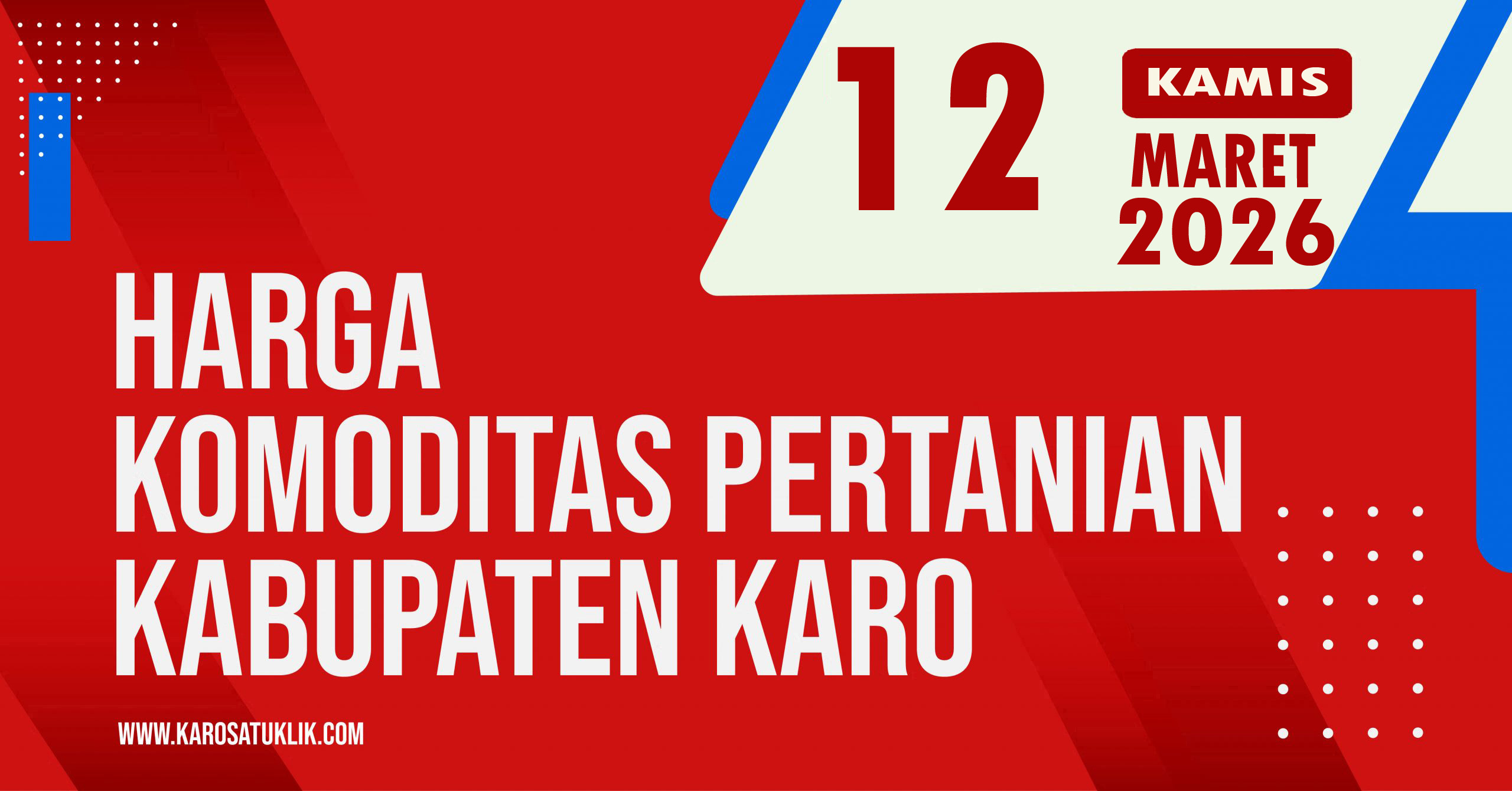 Berastagi, Karosatuklik.com – Berikut ini adalah informasi Daftar Harga Komoditas Pertanian Kabupaten Karo, Kamis 12 Maret 2026, Jam 19.30 WIB.