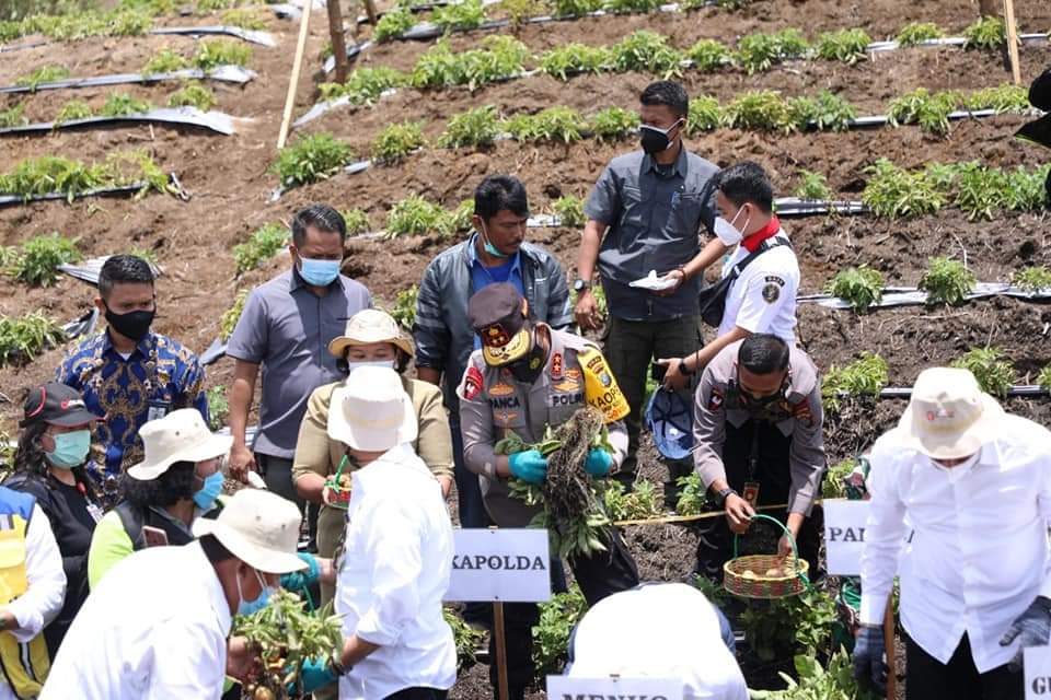 Dalam kunjunganya ke tiga menteri Presiden Joko Widodo itu melaksanakan panen kentang serta pengembangan food estate di Desa Ria-Ria, Kabupaten Humbahas.