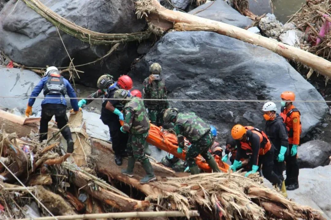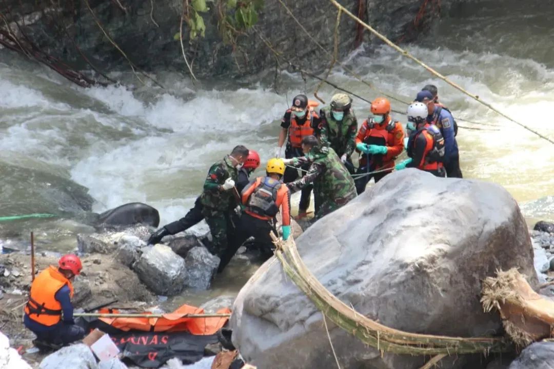 Tanah Datar, Karosatuklik.com – Dandim 0307/Tanah Datar, Letkol Inf Agus Priyo Pujo Sumedi, bersama Bupati Tanah Datar, Eka Putra dan Komandan Batalion 131/Brs, Letkol Inf Dedi Harnoto turun langsung dalam proses evakuasi korban yang ditemukan oleh tim gabungan di kawasan Pemandian Mega Mendung, Jorong Air Mancur, Nagari Singgalang, Kecamatan X Koto, Kabupaten Tanah Datar, Sumatera Barat, Senin (1/12/2025)