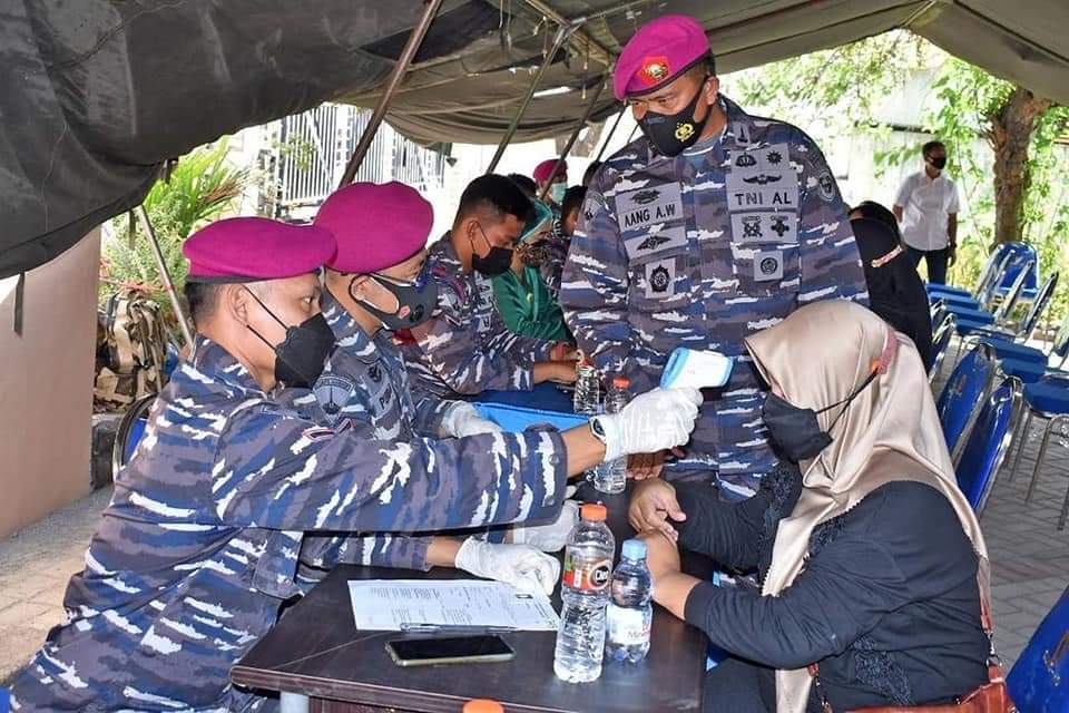 Sidoarjo, Karosatuklik.com – Komandan Batalyon Infanteri 1 Marinir Letkol Marinir Aang Andy Warta, M. Tr, Opsla memimpin serbuan vaksinasi Covid-19 dosisi ke dua bagi masyarakat maritim wilayah Tambak Cemandi kecamatan Sedati maritim di pantai Tambak Cemandi dan Balai Desa Tambak Cemandi Kec. Sedati, Sidoarjo, Jawa Timur. Senin (23/08/2021).