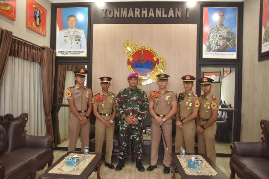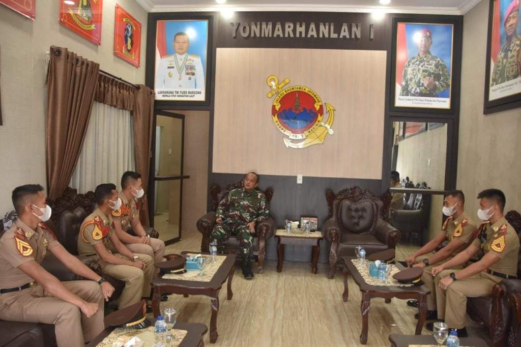 Sermadatar (M) M Haryo Thoriq dan satu personel tingkat ll Sertar (M) Dinu Sururi mengunjungi Mako Yonmarhanlan l Belawan dalam rangka silahturahmi sekaligus menghadap kepada Komandan Yonmarhanlan I Mayor Marinir Indra Fauzi Umar.