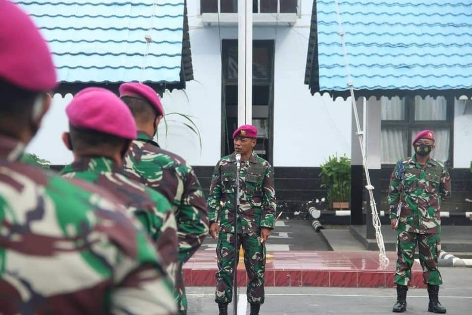 Bitung, Karosatuklik.com _ Menjelang Hari Raya Idul Fitri 1422 H Danyonmarhanlan VIII Bitung, memimpin apel khusus di Lapangan Apel Ksatrian Arthur Solang Jl. RE Martadinata No.02 Maesa Kota Bitung, Selasa (11/05/2021)