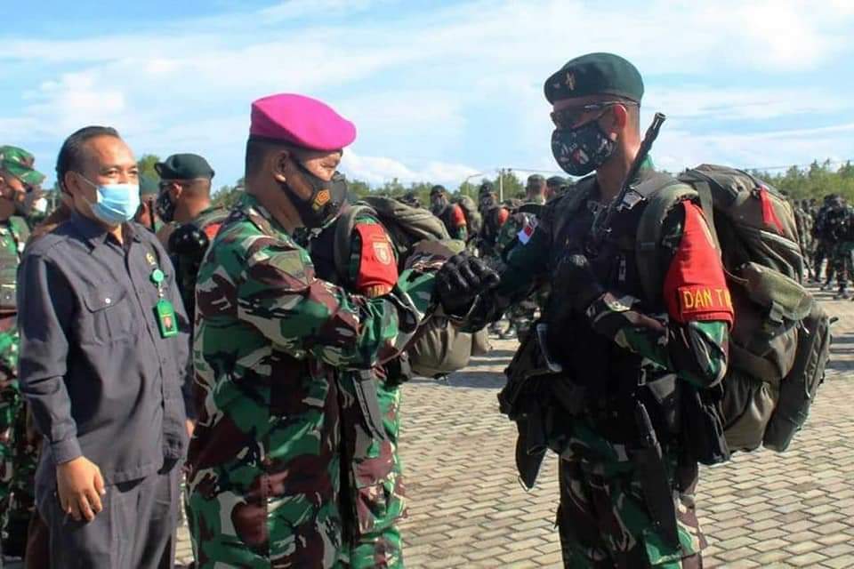 Kota Tarakan, Kalimantan Utara – Dispen Kormar (Tarakan) Komandan Batalyon Marinir Pertahanan Pangkalan XIII Tarakan Letkol Marinir Parison Renaldo Siregar, S.H., M.M menghadiri upacara pengantaran Satgas Pengamanan Perbatasan Mobile Yonif Raider 613/Rja yang dilaksanakan di Lapangan Apel Mako Lantamal XIII Jalan Sei Ngingitan Kelurahan Mamburungan Kecamatan Tarakan Timur, Kota Tarakan, Kalimantan Utara, Kamis (15/04/2021).