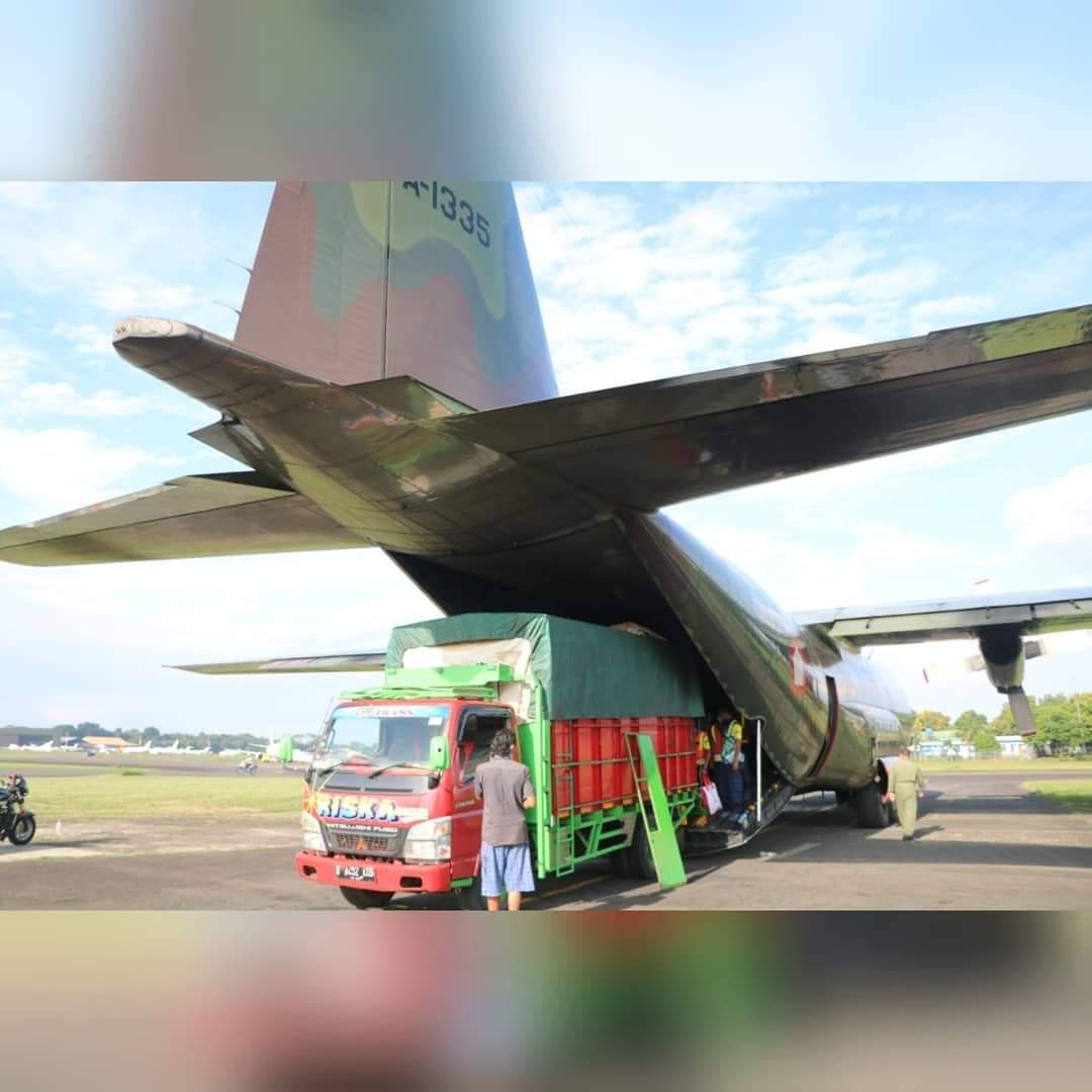 Maumere, Karosatuklik.com – Sebanyak 25 ton lebih Bantuan Sosial (Bansos) untuk korban banjir Bandang Flores NTT yang diangkut dua pesawat C-130 Hercules TNI AU A-1335 dan A-1337 tiba di bandara Franciscus Xaverius Seda, Maumere, NTT, Selasa (6/4/2021).