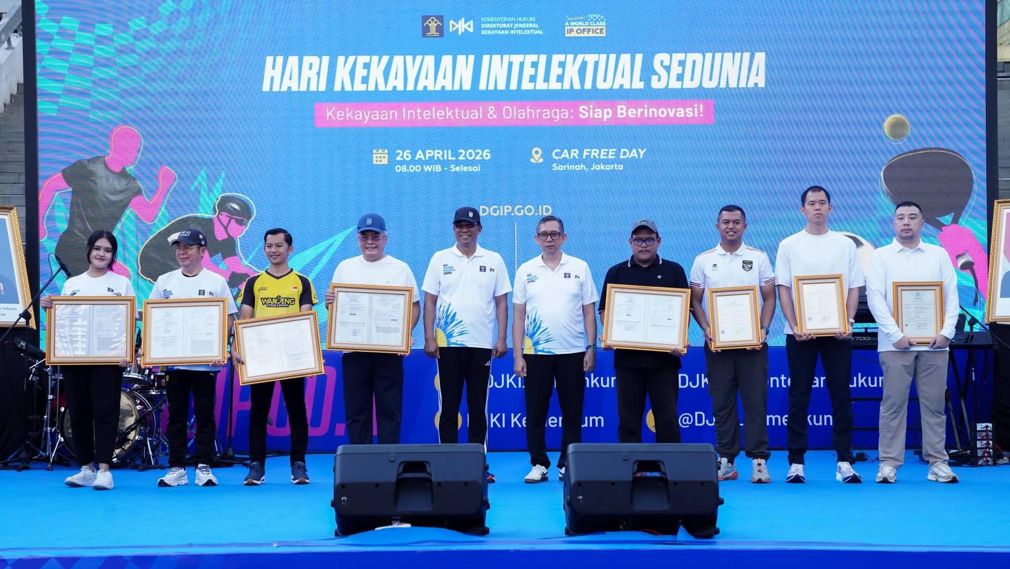 Jakarta, Karosatuklik.com – Direktorat Jenderal Kekayaan Intelektual (DJKI) Kementerian Hukum menyerahkan sembilan sertifikat kekayaan intelektual (KI) kepada para pemilik hak dalam rangka memperingati Hari KI Sedunia 2026. Kegiatan tersebut berlangsung di Anjungan Sarinah, Jakarta Pusat, Minggu 26 April 2026.