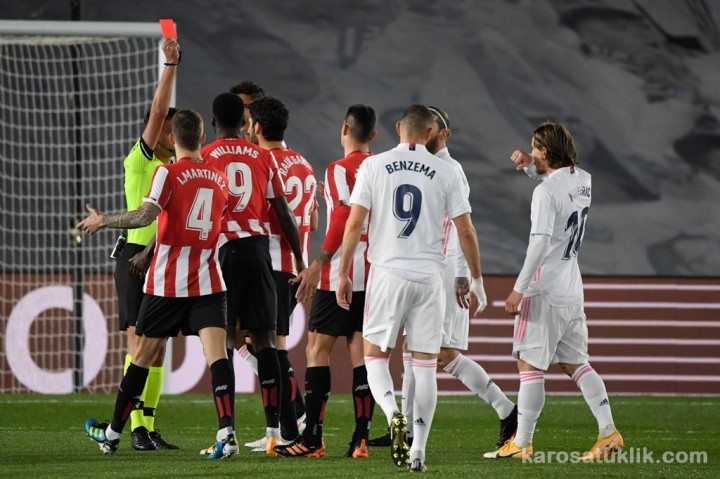 Padahal Los Blancos bermain dengan keunggulan satu pemain sejak menit 13, saat Raul Garcia diusir untuk sebuah keputusan meragukan dari wasit Jesus Gil Manzano, untuk pelanggaran keduanya terhadap Kroos, yang membuahkan kartu kuning kedua. Tapi keputusan sudah terlanjur dijatuhkan dan ajaibnya, di tengah ketertinggalan satu gol dan minus satu pemain, tim asuhan Gaizka Garitano masih sempat membalaskan satu gol pada awal babak kedua melalui Ander Capa.