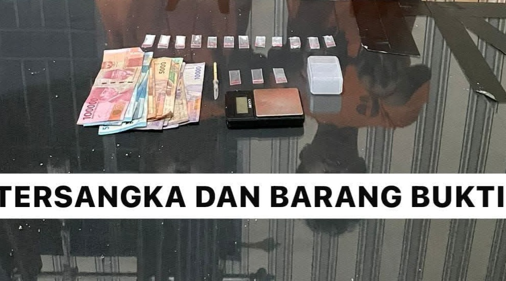 Dari hasil penggeledahan, polisi menemukan sejumlah barang bukti, antara lain 12 paket plastik klip bening berisi diduga narkotika jenis sabu dengan berat netto 1,6 gram, 3 lembar plastik klip kosong, 1 kotak plastik bening, 1 pipet plastik bergagang kayu sebagai alat sekop, 1 timbangan elektrik merek Camry warna hitam dan Uang tunai Rp500.000.