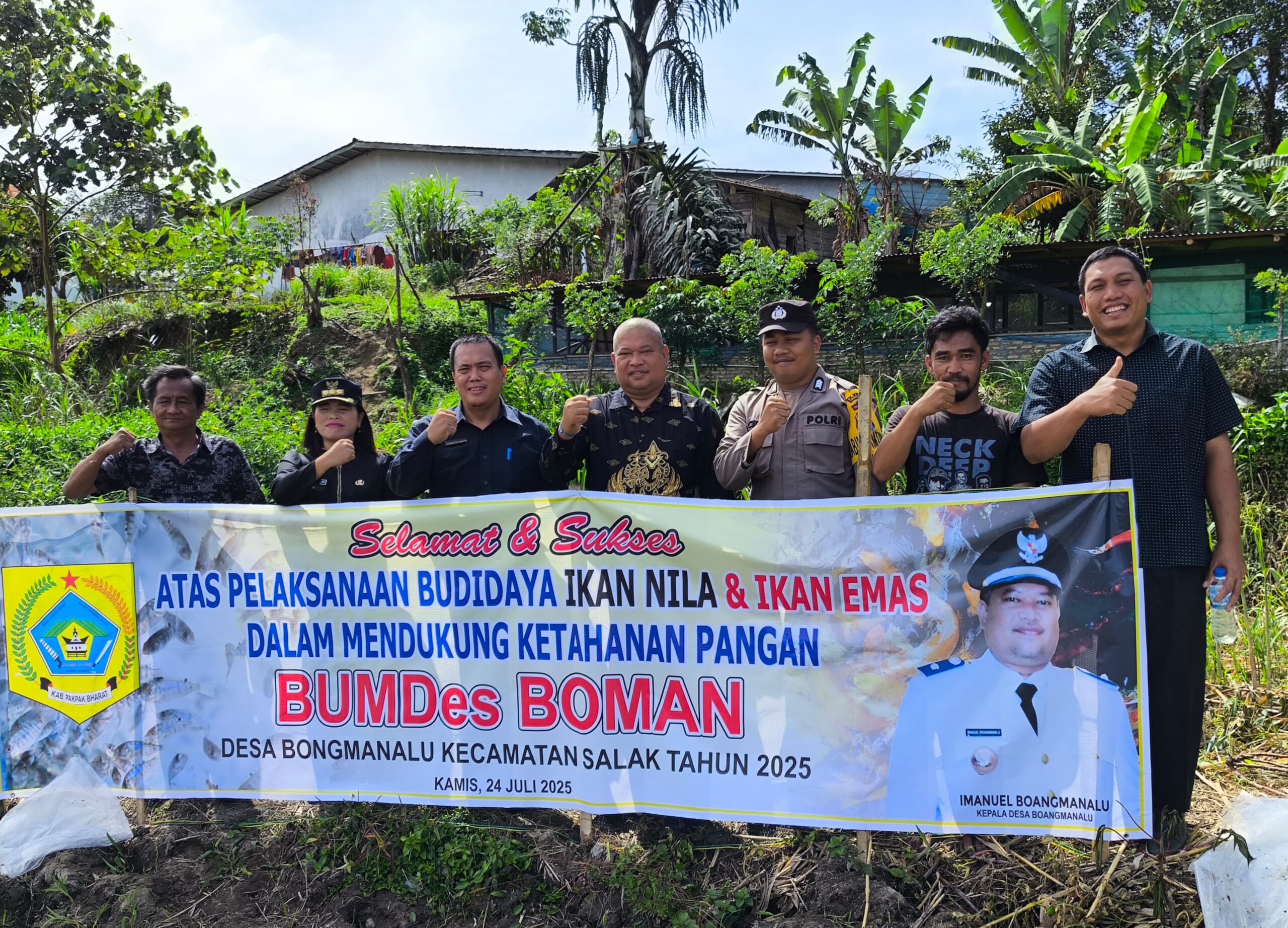 Salak, Karosatuklik.com – Pemerintah Desa Boangmanalu tabur 16.000 ekor ikan emas dan ikan nila di kolam milik BUMDes Desa Boangmanalu, Kecamatan Salak, Kabupaten Pakpak Bharat, Kamis (24/7/2025).