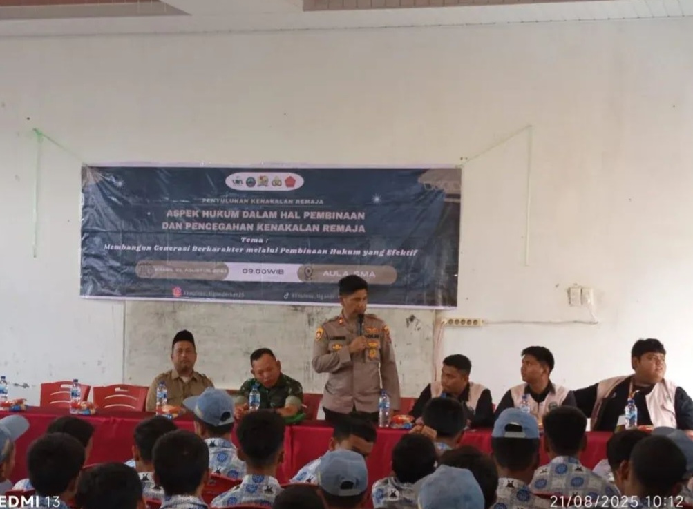 Tiganderket, Karosatuklik.com – Edukasi hukum kepada generasi muda, Kapolsek Payung, IPTU Irwanta Jaya Sembiring bersama personel Polsek Payung menjadi narasumber pada kegiatan sosialisasi pencegahan kenakalan remaja yang digelar di SMA Negeri 1 Tiganderket, Kecamatan Tiganderket, Kamis (21/8/2025).