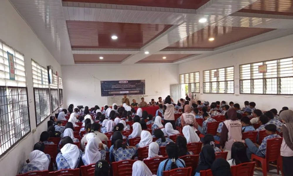 Para siswa/siswi terlihat antusias mengikuti jalannya sosialisasi, dengan aktif mendengarkan materi dan berdialog langsung dengan narasumber. (R1)