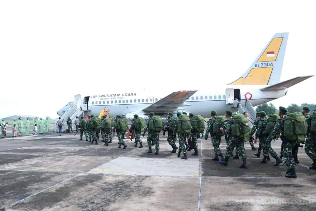 Madiun, Karosatuklik.com – Sebanyak empat pesawat TNI Angkatan Udara melaksanakan dukungan penerbangan pergeseran pasukan Batalyon Infanteri (Yonif) Para Raider 501 Kostrad yang akan melaksanakan tugas Pengamanan Perbatasan Penyangga Republik Indonesia – Papua Nugini (RI-PNG).