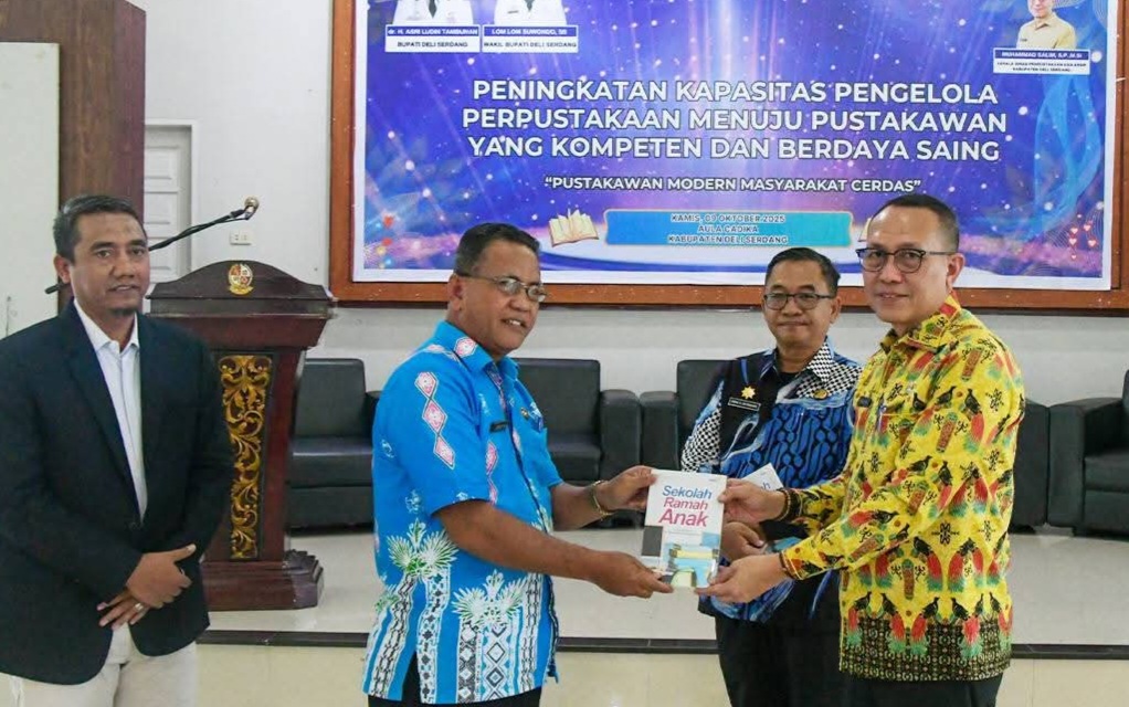 “Mari kita ciptakan perpustakaan yang memiliki daya tarik, sehingga para pemustaka akan selalu merindukannya dan ingin berlama-lama di sana,” kata Bupati Deli Serdang dr H Asri Ludin Tambunan diwakili Asisten I Pemerintahan dan Kesejahteraan Rakyat Drs Zainal Abidin Hutagalung membuka Peningkatan Kapasitas Pengelola Perpustakaan Menuju Pustakawan yang Kompeten dan Berdaya Saing di Aula Cadika Pramuka Deli Serdang, Lubuk Pakam, Kamis, 9 Oktober 2025.