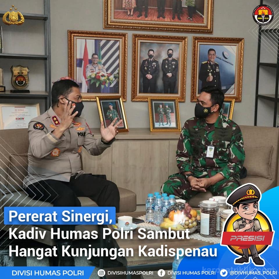 Sebelumnya, Kadiv Humas Polri Irjen Pol. Raden Prabowo Argo Yuwono, S.I.K., M.Si., menerima kunjungan Kepala Dinas Penerangan TNI Angkatan Udara (Kadispenau) Marsekal Pertama TNI Indan Gilang Buldansyah, S.Sos., di Mabes Polri, Jakarta Selatan, Selasa (9/2/2021).