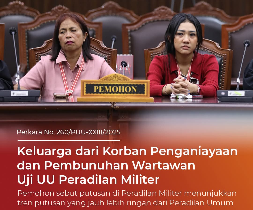 Permohonan ini diharapkan dapat memperkuat prinsip supremasi sipil dan memastikan bahwa korban-korban kekerasan yang melibatkan anggota TNI memperoleh keadilan melalui proses peradilan yang objektif, transparan, dan setara. (R1/Humas MK)