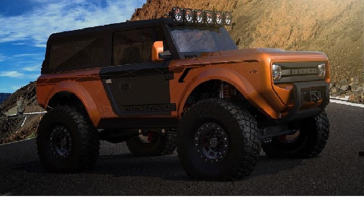 Tampilan depannya tetap mempertahankan ciri khas Bronco edisi pertama, yakni grille besar dan lampu bulat. Namun, ukuran bannya lebih besar untuk memberikan kesan gagah.